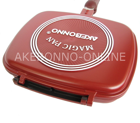 Pan ganda atau twin pan dengan ceramic coating anti lengket, coating ini lebih keras dan tahan gores dibandingkan dengan teflon. Seal menggunakan silicone tahan panas untuk mencegah kebocoran selama pemakaian sehingga minyak/kuah tidak akan menetes atau tumpah ketika pan dibalik. Pengunci pan atas dan bawah menggunakan magnet kuat sehingga mudah waktu pemakaiannya. Body terbuat dari aluminium tebal dengan lapisan ceramic dan pegangan terbuat dari plastik tahan panas.