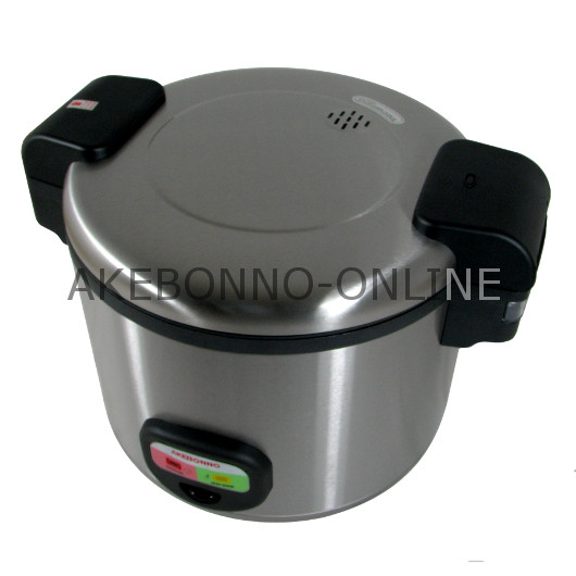 Rice cooker besar kapasitas 5,4 liter, terbuat dari stainless steel dengan pegangan plastik dan panci di coating lapisan anti lengket.