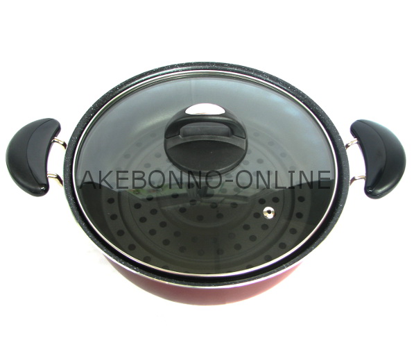 Panci / pot untuk memasak sukiyaki dengan lapisan marble coating tahan gores, dilengkapi juga dengan saringan sehingga dapat digunakan untuk steamer / kukusan. Body terbuatdari aluminium tebal dengan lapisan marble dan pegangan dari plastik, tutup dari kaca tahan panas dan dilengkapi saringan steamer. Dapat digunakan untuk bermacam-macam keperluan tidak hanya untuk sukiyaki. Dapat digunakan pada kompor gas portable.