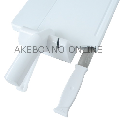 Papan potong atau telenan yang dilengkapi dengan pisau yang dapat dimasukkan di dalam telenan serta asahannya yang menjadi satu dengan telenan. Salah satu sisi telenan dapat diangkat dengan menekan pegangan telenan sehingga hasil potongan sayuran atau bumbu dapat dengan mudah dipindahkan tanpa tercecer. Jika pisau sudah tidak tajam karena sering digunakan, maka dapat dengan mudah di ditajamkan pada asahan di sebelah pegangan, caranya pun mudah, maju dan mundurkan pisau pada batu asahan. Terbuat dari plastik ABS bermutu berwarna putih.
