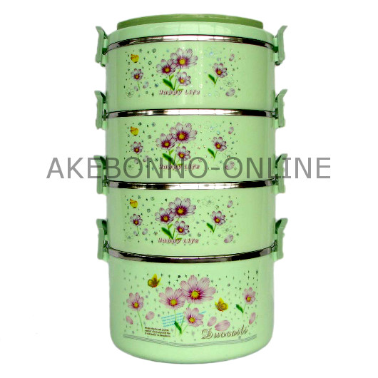 Rantang Berbentuk unik dengan bagian luar terbuat dari plastik dan bagian dalam terbuat dari stainless steel. Terdapat ruang vacuum antara dinding luar dan dalam sehingga makanan panas akan tahan lebih lama. Terdiri dari tiga susun dengan pengunci plastik, dapat digunakan untuk makanan dingin maupun panas. Cocok untuk dibawa piknik, ke kantor dll.