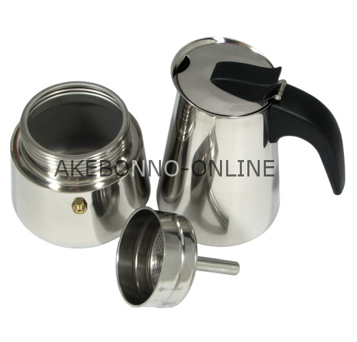 Alat untuk menyeduh kopi dengan sistem tekanan untuk dipakai diatas kompor (manual). Kopi yang dihasilkan akan lebih pekat daripada langsung di seduh pada gelas karena moka pot menggunakan sistem tekanan, bubuk kopi seperti di press menggunakan air panas sehingga hanya ampasnya yang tertinggal. Pemakaiannya pun mudah, buka moka pot dengan cara diputar, lepaskan saringan, isi dengan air pada bagian bawah, pasang saringan, masukkan bubuk kopi, pasang bagian atas moka pot, panaskan diatas kompor, tunggu sampai kopi mengalir ke atas lewat pipa di tengah. Kopi siap dinikmati. Semua bagian terdiri dari stainless steel kecuali pegangan terbuat dari plastik tahan panas.